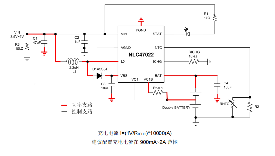 NLC47022 的 升 壓 開 關(guān) 充 電 轉(zhuǎn) 換 器 的 工 作 頻 率 為600kHz,轉(zhuǎn)換效率為 90%,其內(nèi)部集成高壓晶體管,提高了NLC47022 在各種復(fù)雜應(yīng)用條件下的可靠性。
