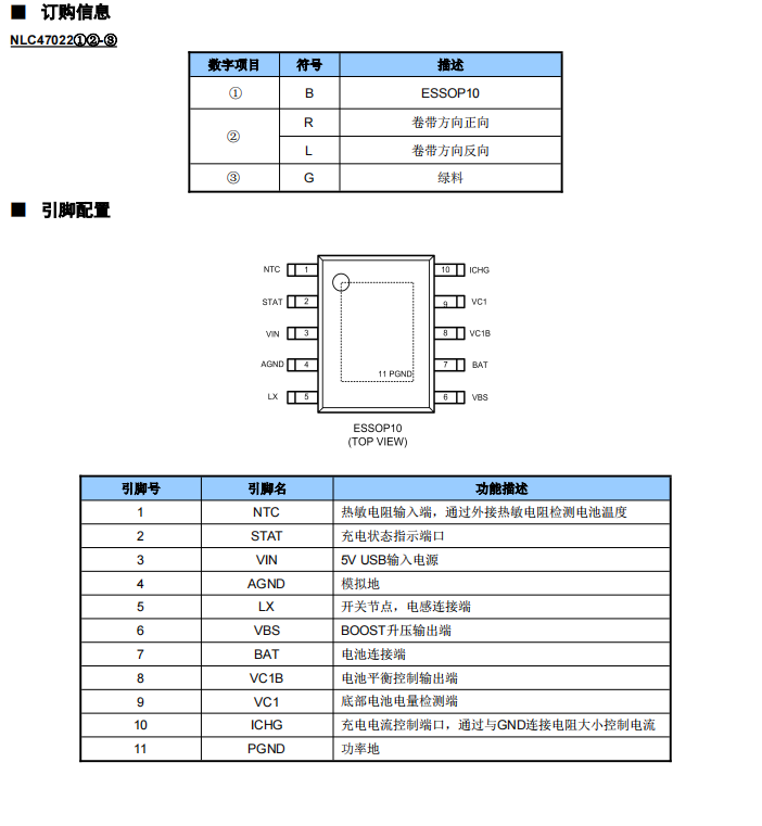 產(chǎn)品名稱:NLC47022帶NTC功能和電量均衡功能電流2A 5V異步升壓充雙節(jié)芯片