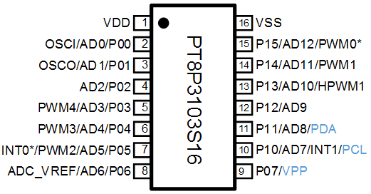 產(chǎn)品名稱(chēng):PT8P3103 A/D 型 8-Bit MCU