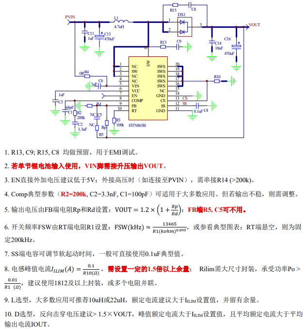 HTN865B通過RT管腳外接電阻調(diào)整開關(guān)頻率,開關(guān)頻率范圍為100KHZ-1000KHZ