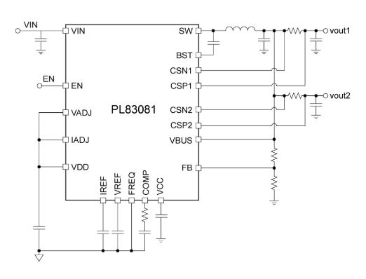 該設(shè)備還具有可編程的軟啟動功能,并提供各種保護(hù)特性,包括周期性電流限制、輸入欠壓鎖定(UVLO)、輸出過壓保護(hù)(OVP)、熱關(guān)斷和輸出短路保護(hù)等。PL83081 提供電壓控制回路、恒流回路和熱調(diào)節(jié)回路。