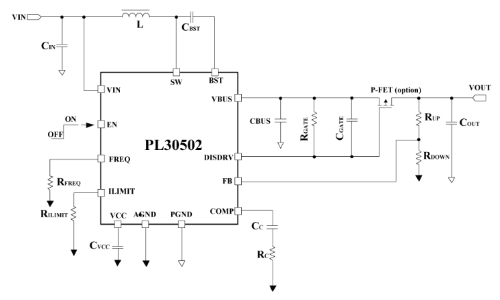 PL30502是一款20V同步升壓轉(zhuǎn)換器,內(nèi)置用于負載斷開的柵極驅(qū)動器。它集成了兩個低導通電阻的功率場效應晶體管(FET):一個導通電阻為7-mΩ的開關 FET 和一個導通電阻為7-mΩ的整流 FET。