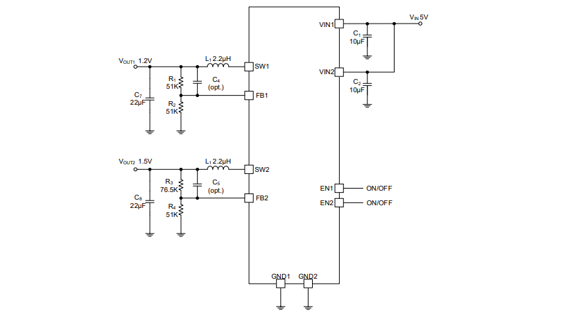 產(chǎn)片介紹:The RY1302 is a 2-CH power management IC for applications powered by one Li-Ion battery or a DC 5V adapter It integrates dual synchronous buck regulators and can provide high efficiency output at light load and heavy load operation The internal compensation architecture simplifies the application circuit design