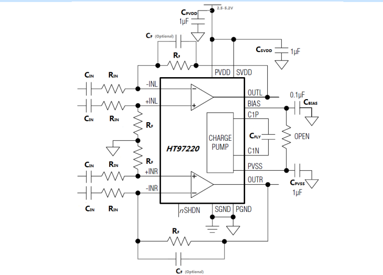 HT97220(L)是一款差分輸入/單端輸入、可直接輸出驅(qū)動(dòng)的耳機(jī)放大器/線路驅(qū)動(dòng)器。5V供電時(shí),器件可為32ohm耳機(jī)提供125mW的功率。器件可通過外部電阻調(diào)節(jié)增益 (固定增益6dB版本需要提前定制)。器件在音頻范圍內(nèi)具有卓越的THD+N表現(xiàn)。